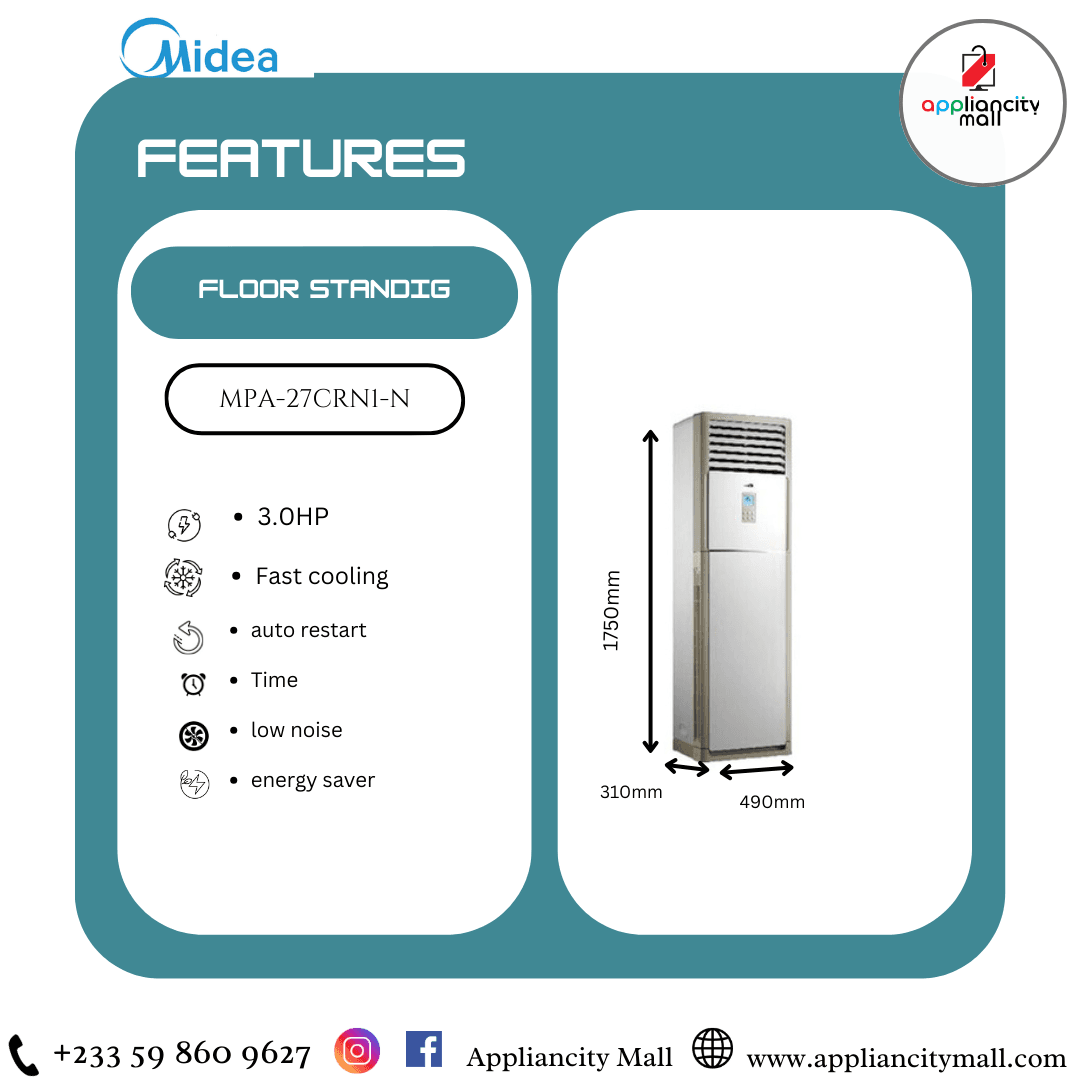 Experience unparalleled comfort with the Midea 3.0Hp Floor Standing AC [MPA-27CRN1-N], designed to provide powerful cooling while enhancing the air quality in your space. This advanced air conditioning unit is perfect for large rooms and commercial settings, combining innovative technology with user-friendly features to ensure a refreshing indoor environment all year round.