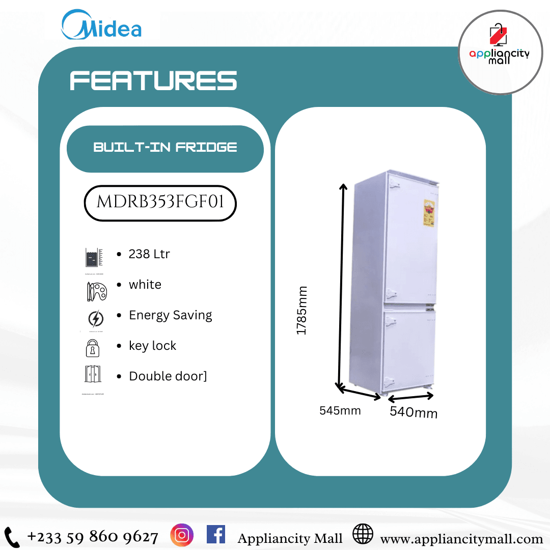 Transform your kitchen with the sleek and efficient Midea Built-In Fridge 238Ltrs – MDRB353FGF01. Designed for modern living, this refrigerator combines advanced technology, energy efficiency, and practicality, making it an ideal choice for homeowners seeking to optimize their kitchen space without sacrificing functionality.
